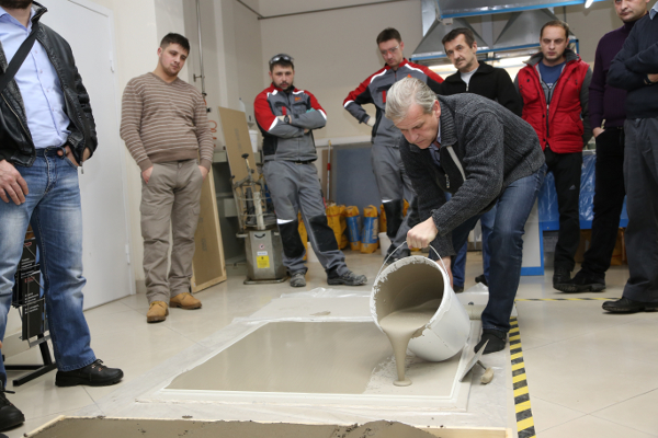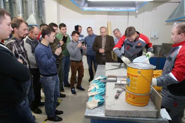 Первые тренинги посетили 37 участников. Эксперты Sika провели для них мастер-класс «Ровный пол. От теории к практике». Инструкторы не только ответили на наиболее интересные вопросы, касающиеся выравнивания полов, но и на практике показали, какие решения позволят наиболее эффективно справиться с поставленными задачами.