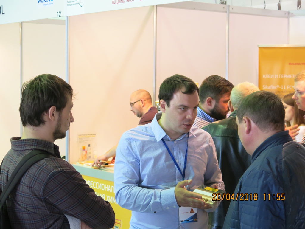 На стенде специалисты Sika рассказали о пяти инновационных системах для укладки деревянных напольных покрытий с помощью однокомпонентных эластичных клеев системы SikaBond®, системе для регулирования влажности и упрочнения основания, а также специальном устройстве для быстрого и комфортного нанесения клея.